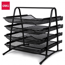 得力(deli)多功能金属网材组合式文件框分层收纳文件栏/文件筐/资料框办公用品黑色9832