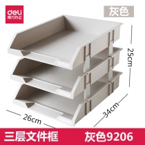 得力(deli)文件框文件盘资料加厚PS材质文件框文件架桌面三层文件盘文件筐资料文件架收纳架9217灰色加厚三层式