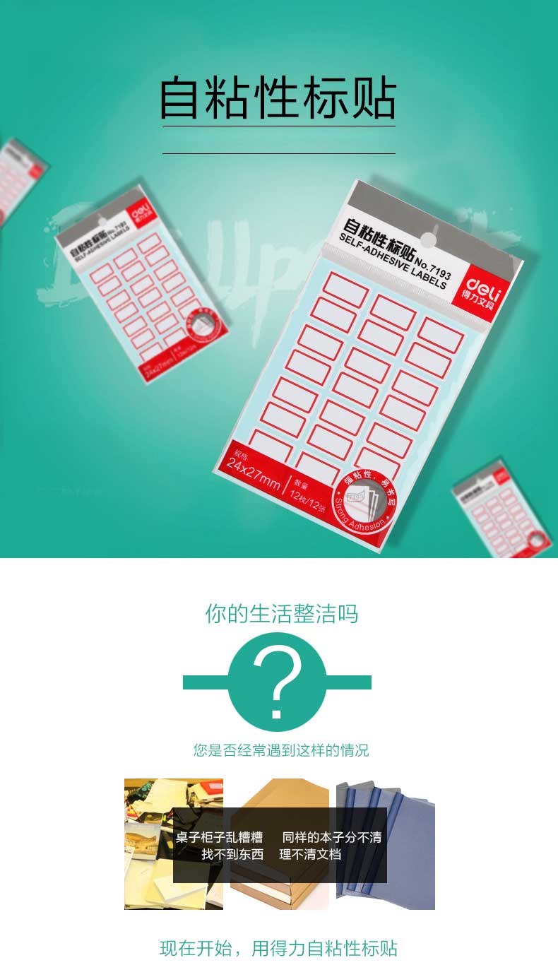 - 商品名称:得力(deli) 不干胶标签纸小标签贴口取纸标价贴价格签贴纸图书分类7182