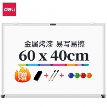 - 2得力(deli)60*40cm易擦磁性办公教学会议挂式白板悬挂级家用儿童写字板黑板(附赠白板擦白板笔磁钉)7842