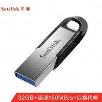 闪迪(SanDisk)32GB USB3.0 U盘 CZ73酷铄 银色 读速150MB/s 金属外壳 内含安全加密软件