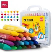 - 7得力(deli)24色桶装学生水溶性旋转油画棒儿童可水洗蜡笔绘画笔炫彩棒72056